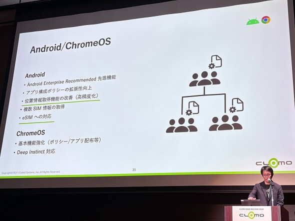 CLOMOはこれまで「Android」や「iOS」「Windows」「macOS」など主要なOSを対象にサービスを展開してきた。2024年6月には新たに「ChromeOS」にも対応している。原口氏は「GIGAスクール構想」でChromeOSの端末が採用されている点に触れ、「急速に拡大しており既に500万台の実績がある。将来的には、『Chromebook』しか使わずに社会人になる人も出てくるだろう」と述べた。