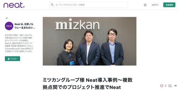 Neatframe(略称:Neat〈ニート〉)は2024年11月18日、ミツカングループによる「Neat Board 50」の活用事例を紹介した。同グループはコロナ禍をきっかけにオンライン会議システムを導入したものの、画面越しのコミュニケーションによる意思疎通の難しさが課題となっていた。