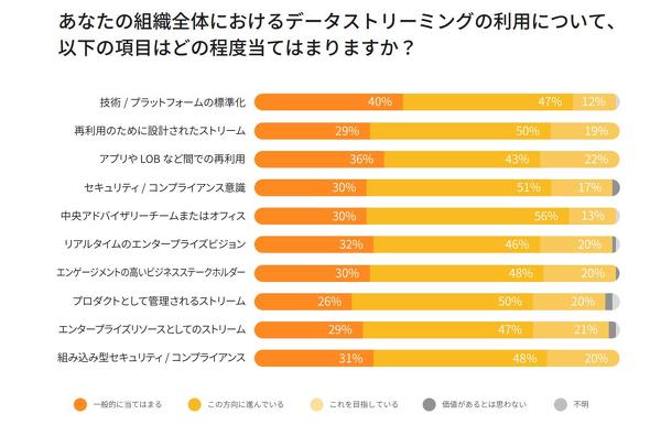 アジア太平洋地域におけるデータストリーミング技術の活用状況を調査したところ、日本においては全社的な活用において後れを取っていることが分かった。