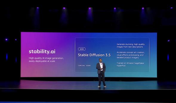 BedrockはStability AIが提供する画像生成AIモデル「Stable Diffusion」もにも対応しているが、今回新たに最新版「Stable Diffusion 3.5」が利用可能になった。