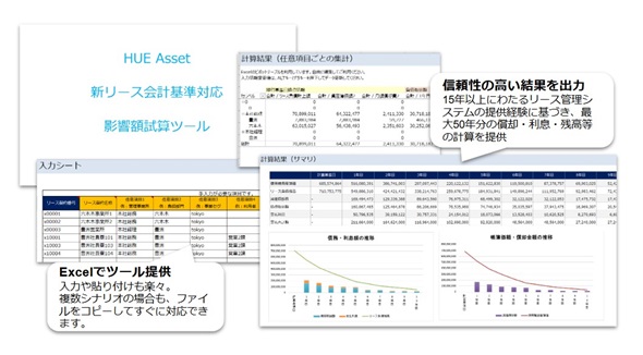 実際に、当社でも新リース会計による「影響額」を算出する企業向けにExcelで計算ができるExcelツールを無償で提供しています。オンバランス件数が少なく、影響の少ない企業様であれば、「これで実務できる」というお声もいただくこともあるため、計算だけであればExcelでも十分かと思います。