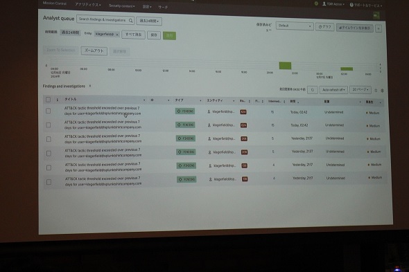 Splunk ES 8.0では脅威の検出ルールも強化されており、1700以上のルールに基づいて、セキュリティイベントを脅威フレームワーク「MITRE ATT&CK」で定められている攻撃者の行動と照らし合わせてマッピングする。これによってSOC担当者はこの問題がどのような内容で「いつ」「どこの」ホストで発生し、「どの」ユーザーが悪用されていたのかなどがセキュリティイベントを一目見るだけで判断できる。