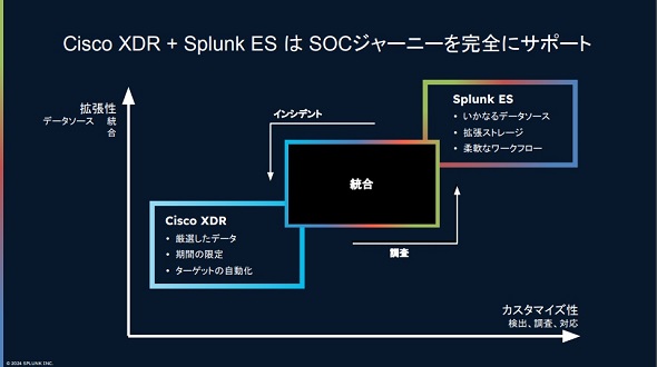 矢崎氏は最後に「Splunk ESは今後、『Cisco XDR』との統合も視野に入れている。これらの製品を組み合わせることでSOCのインシデント調査や対応のジャーニーを包括的にサポートできるようになる」と締めくくった。