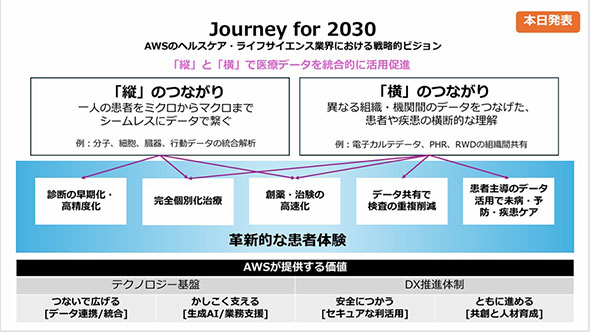 ヘルスケア・ライフサイエンス向けの会見において、Amazonフライホイール効果の応用展開と、2030年に向けた戦略的ビジョンの2つに着目したのは、これまでのAWSの業種別事業展開の説明の中で初めて聞いたアピールの仕方だったからだ。