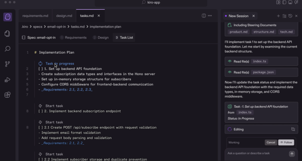 AWSが開発したIDE(統合開発環境)「Kiro」はまず仕様書をエージェントとともに作成し、その仕様書を基にエージェントにコーディングさせることができる。「Claude Code」など他社のコーディングエージェントでも、明示的に指示すればこういったプロセスで開発を進めることはできるが、Kiroはデフォルトの機能としてそれが可能な点が特徴だ。