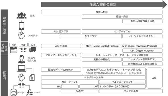 顧客がChatGPTや「Gemini」で購入手続きを完了させる技術も実用化段階に入りました。例えば、Eコマースの運営会社はGoogleのUCP(Universal Commerce Protocol)への対応を進めることで(注10)、Geminiで購買手続きを完結できるようになります。自社商品やサービスをGeminiにリコメンドさせやすくするための施策(AIO/GEO)についても検討を進めるべきでしょう。