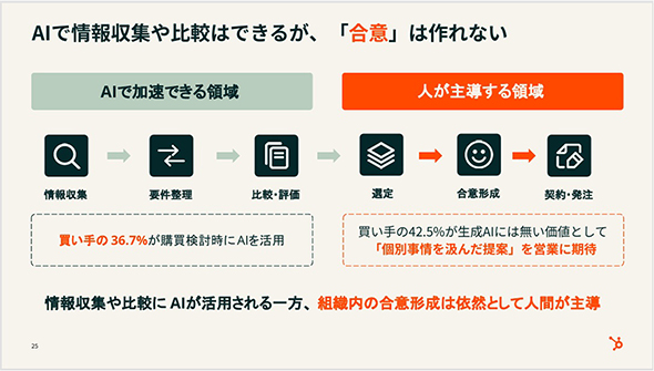 買い手側がAI活用を進める中で、人間の営業担当者に求められる役割が変わりつつある。企業のビジネス成長に直結する「営業×AI」の勘所はどこにあるのか。HubSpotの最新調査から探る。