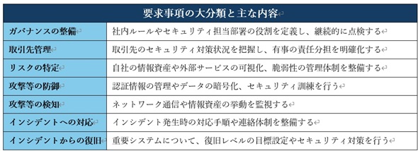 しかしこの制度の目的は、各企業におけるセキュリティ対策状況を比較することではなく、取引元/取引先企業にとって取引関係がどのようなリスク区分に位置付けられるのかを把握し、それに応じた水準を求める点にあります。