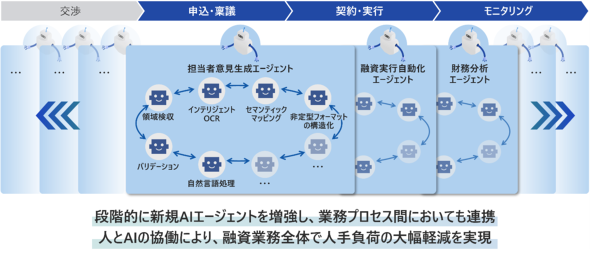 こうしたDXの取り組みをさらに高度化する中で、次のテーマとして浮かび上がったのが、融資業務へのAIエージェントの適用だ。特に財務分析やリスク判断、業種特性の理解など複数の専門領域における情報を参照して自律的に業務を遂行するエージェントの開発を目指す。では、実際にどのような形で導入を進めているのか。