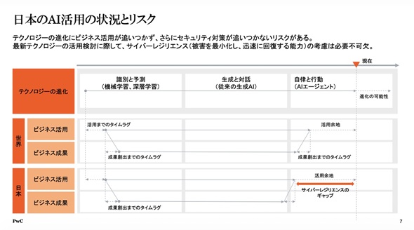 しかしこの進化の速度に対し、企業のビジネス活用やセキュリティ対策は大きく立ち遅れている。村上氏は、最新の技術がもたらす可能性と、それを安全に運用するためのガバナンスとの間に生じている「サイバーレジリエンスのギャップ」を強く危惧している。村上氏は、企業が競争力を維持するための大前提として、「新しいテクノロジーを使うためには、それを支えるレジリエンスの基盤が必要だ」と述べる。