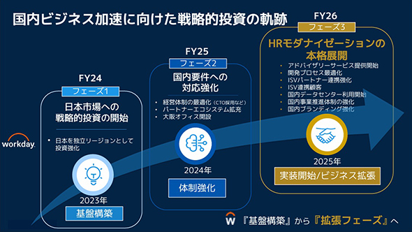 ただ、エージェンティックAIプラットフォームについてはビッグテックベンダーがひしめく激戦市場になりそうだ。WorkdayとしてはASORの考え方を生かして他のプラットフォームとも柔軟に連携できるようにして、場合によっては他のプラットフォーム同士をつなぐ役割も果たしたいところだ。この点について会見の質疑応答で聞いたところ、「ASORはそうした連携機能も備えている」(古市氏)とのことだった。