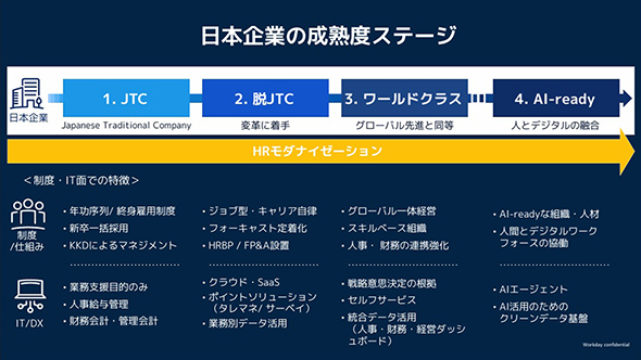 図3は、HRモダナイゼーションに向けた日本企業の成熟度ステージを表したものだ。