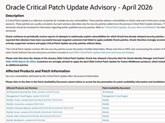 Oracleは、複数製品の脆弱性に対応するため、481件のセキュリティ修正を含む定例アップデートを公開した。既存の欠陥が攻撃に使われる事例が報告され、迅速な適用とサポート対象版の利用を呼びかけている。
