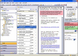 これはOutlookの新しいタスクペインだ。右端に予定表のエントリと現在のto-doが幾つか表示される。このスクリーンショットはDellのノートPCでキャプチャした。画面が大きいほど見やすいと思う。
