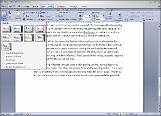 Document Themesを使うと、フォントや色などさまざまな書式の要素を一度に簡単に変更できる。残念ながら、この変更はLive Previewのように表示されない。