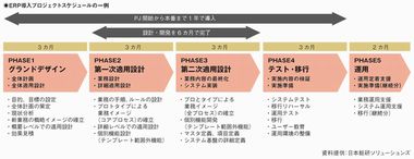 日本総研ソリューションズ産業事業本部の岡田吉男統括部長は、導入に際して、細かなタイムテーブルを作り、忙しい社内スタッフに対して、「今週はあなたに2時間分の協力をお願いしたい」というように具体的に求めていくという。大雑把にフェーズを決めて、実質的には関係のない人までミーティングに呼び出していては、業務内容の聞き取り調査という初期段階で、プロジェクトは座礁への一歩を踏み出して行きかねない。