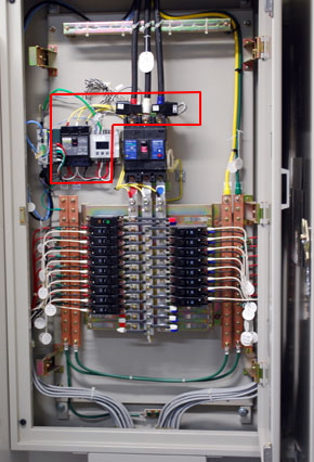 最初のプロセス「計測」は消費電力の把握だ。実証実験では豊中教育研究棟の各フロアにある主分電盤に、エコパワーメータや多回路エネルギーモニターを取り付け、計測したデータをLAN経由でデータベースに蓄積する。計測ポイントは全部で90カ所。計測範囲はフロアごとに異なるが、学生の情報教育や語学教育の教室があるフロアでは概ね教室単位でデータを収集できるよう3〜4カ所、電力消費量の多いマシンルームがあるフロアは17カ所、竹村教授の研究室などがある5階には最多の45カ所、その他の研究室がある6、7階には4〜5カ所ある。