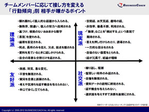 前回はチームメンバーと付き合う方法として、「4つの行動傾向」をご紹介した。今回は「4つの行動傾向」で分類されたそれぞれのタイプ(「現実派」「社交派」「理論派」「友好派」)に効果的なコミュニケーションの取り方と、それぞれのタイプが嫌がるポイントについて解説する。