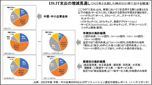 ノークリサーチは2023年7月10日、中堅・中小企業市場におけるIT支出の増減に関する調査結果を発表した。