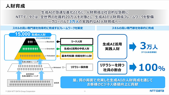 「人材育成については、全世界の社員約20万人を対象として生成AIの人材育成フレームワークを整備している」
