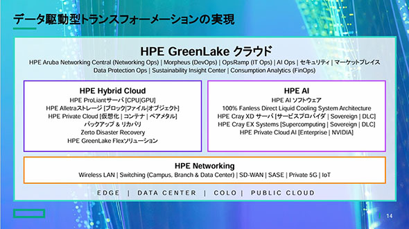 このGreenLakeの推進こそが、HPEにとっては従来のモノ売りからサービス提供へのビジネスモデル転換へのチャレンジになる。それについて解き明かす前に、HPEが今回発表した事業方針の中からGreenLakeに関する取り組みをピックアップする。