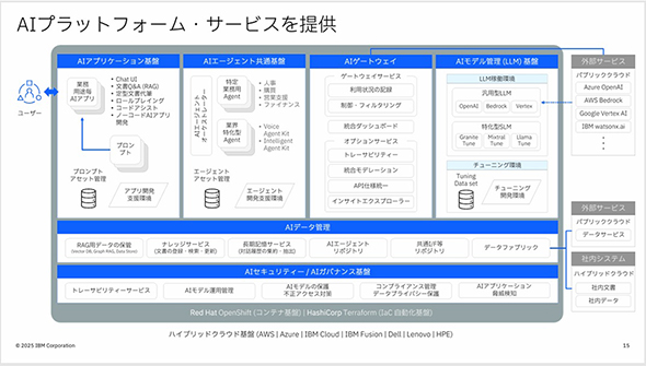 その上で、同氏は「これから多種多様なAIエージェントがどんどん出てくる。それらをプラグインの形で安全につないで生かすのが、IBMのAIプラットフォーム・サービスだ。当社は今後、このサービスに注力していく」と力を込めた。
