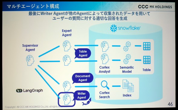 整備したデータ基盤を土台に、同社はAIエージェントの開発を本格化させている。三浦氏は「データ基盤の統合、メタデータの整備、適切なアクセス制限によって、人もAIも安全かつ効率的にデータを利用できる環境が整いつつあります」と説明する。