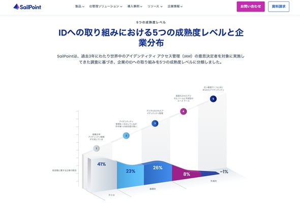 アイデンティティーセキュリティへの取り組みを客観的に評価し、次の一手を考える上で、「見える化」をし、グローバルな視点での自社の現在地を把握することは不可欠だ。SailPointのレポートは、この目的のために独自の「成熟度モデル」によって企業の取り組み状況を明らかにしている。