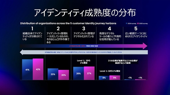 「調査対象の組織の63%は、現時点ではホライゾンの1または2に位置している。すなわち、成熟度の観点では非常に未熟なレベルだ。手入力のプロセスも多く、分散されたツールやサイロ化されたデータシステムなどがあり、セキュリティやデータとアイデンティティーの連携ができていない」(ゴセット氏)