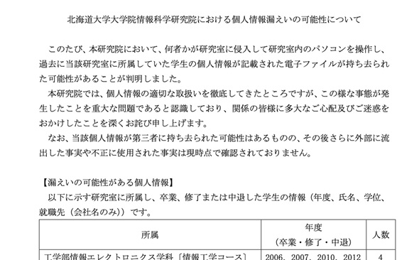 北海道大学大学院は2025年12月2日、個人情報漏えいの可能性に関する報告書を公開しました。個人情報漏えいだけでは報道もあまりされなくなっており、私たちも慣れてしまったのかもしれません。しかし今回のケースは大変シンプルかつ繰り返し周知していかなければならないポイントが含まれているので紹介していきましょう。