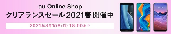 「au Online Shop クリアランスセール2021春」は、2月12日から3月15日まで開催のオンラインストア限定のセールです。