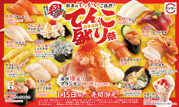 1月5日より始まっている今回のプロジェクトはファイナルにふさわしい、スシロー名物の「てんこ盛り祭」です! 売り切れ次第終了となってしまうので、早速気になる内容を紹介していきます。