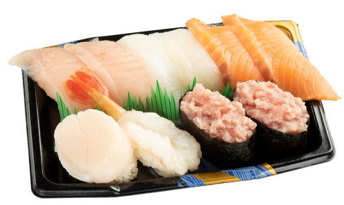 大切りサーモン、真いか、大切りびんとろ、ジャンボサイズのほたて貝柱、大盛りねぎまぐろが詰まったセットです。販売価格は940円。通常店舗では販売していない、スシロー To Go限定のメニューですのでご注意ください。