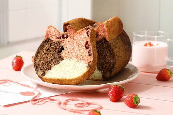 生地は「いちご風味」「ココア風味」「プレーン」の3種類となっています。ピンクのかわいらしい三毛猫の食パンは、プレゼントにもよろこばれそうです。