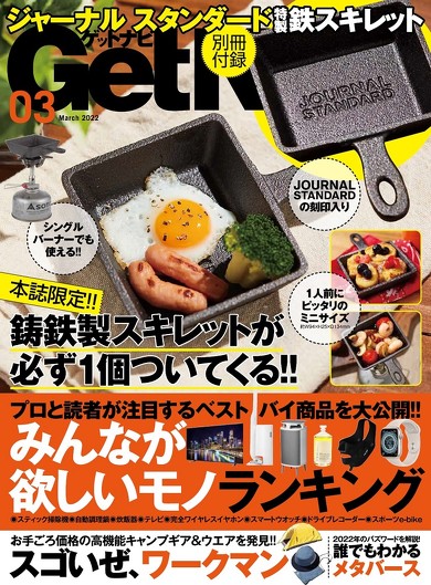ワン・パブリッシングは、「GetNavi(ゲットナビ)3月号」を発売中です。付録はジャーナルスタンダードと共同開発した鉄スキレットで、販売価格は990円(税込)です。