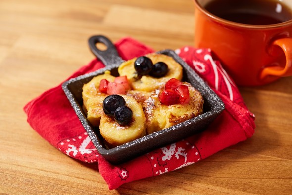 シングルバーナーや焚き火台などに乗せて直火で使えます。1人前にぴったりのコンパクトなサイズ感で、朝食やおつまみ、スイーツなどさまざまな料理で活躍します。