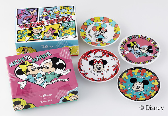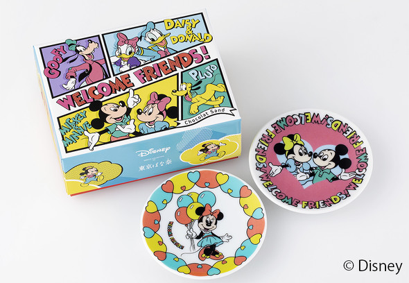 また公式オンラインショップだけで買える、ミッキーやミニーが描かれた豆皿がセットになった「通販限定豆皿セット」も登場。「通販限定豆皿セット」は、レトロでかわいいボックスにセットされています。ボックスは「ミッキーマウス&ミニーマウスデザイン」と、ミッキーと仲間たちをテーマにした「ミッキー&フレンズデザイン」の2種類です。