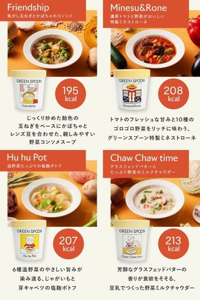グリーンスプーン(GREEN SPOON)の「野菜スープ」シリーズはゴロゴロ野菜がたっぷり入った冷凍タイプのカップスープです。シリーズ累計で100万食を売り上げており、各メディアなどでも取り上げられています。