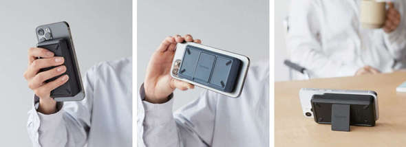 「Qi+マグネット モバイルバッテリー」は、収納可能なスタンドが付いているため、充電をしながら快適に動画視聴ができます。