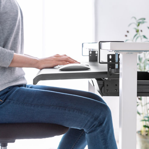キーボードとマウス操作を体に近い位置で行えるため、背筋を伸ばした状態でパソコン操作ができ、姿勢改善効果も期待できます。また、収納が増えたことによってデスクの上を広々と使えるようになります。