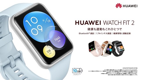 華為技術日本(ファーウェイ・ジャパン)は、スマートウォッチ「HUAWEI WATCH FIT 2」のアクティブモデルを6月2日、クラシックモデルを6月9日に発売します。「HUAWEI WATCH FIT」シリーズの最新モデルで、前モデルよりもディスプレイの表面積が18.6%大きくなり、GPSの制度も向上しています。Bluetooth通話も可能です。