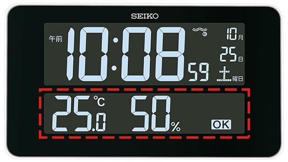 例えば、温度35度・湿度40%の場合は赤色LED表示となり、熱中症の注意を喚起します。さらに温度と湿度表示の横に「↑」「↓」のアイコンを表示し、快適な温度と湿度へ誘導します。メーカー希望小売価格は1万6500円(税込)です。