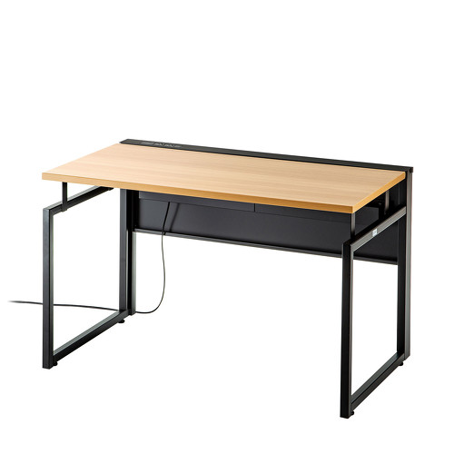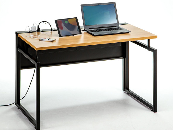 「FDM-LMACシリーズ」は、強度の高い木製の天板とブラックカラーのスチームフレームを採用した北欧風のシンプルデザインデスク。ケーブルカバーには、埋め込みコンセント(AC 2個口とUSB Type-Aが1ポート)を備え付けています。