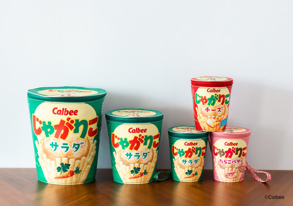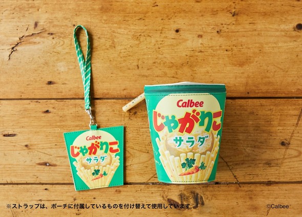 ポーチは、サラダ味、サラダ味BIGサイズ、サラダ味メガBIGサイズ、チーズ味、たらこバター味の5種類。サラダ味BIGサイズとサラダ味メガBIGサイズは書店、サラダ味とチーズ味はセブン‐イレブン、たらこバター味は宝島チャンネルで展開します(※一部取り扱いのない店舗があります)。