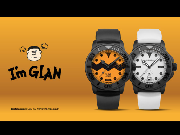 腕時計ブランド「UNDONE」は9月中旬、漫画「ドラえもん」に登場する「ジャイアン」をモチーフとした数量限定ウォッチ「I’m Gian Power of Orange」「I’m Gian Handsome White」を発売します。販売価格は各5万9400円(税込、以下同)です。