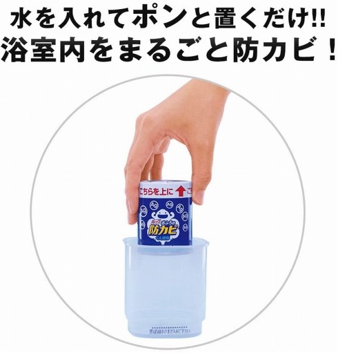 使い方は、水を入れてポンと置くだけ。煙が出たら浴室の扉を閉めて90分以上放置します。最後に30分ほど換気すれば作業終了です。手軽に浴室を丸ごと除菌できます。フローラルの香りのレギュラータイプのほか、「やさしいせっけんの香り」「消臭ミントの香り」が用意されています。