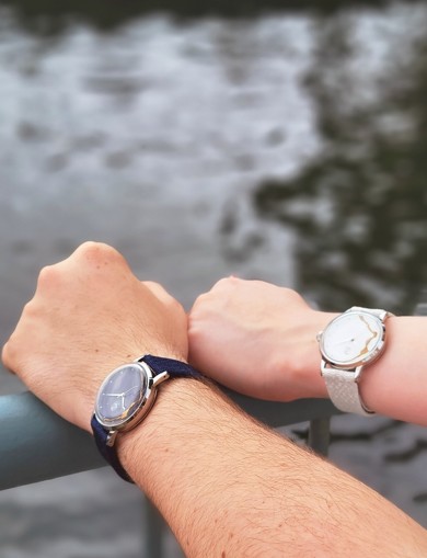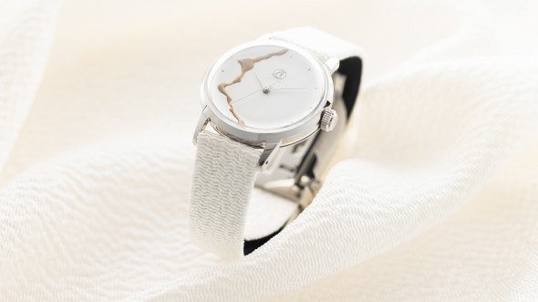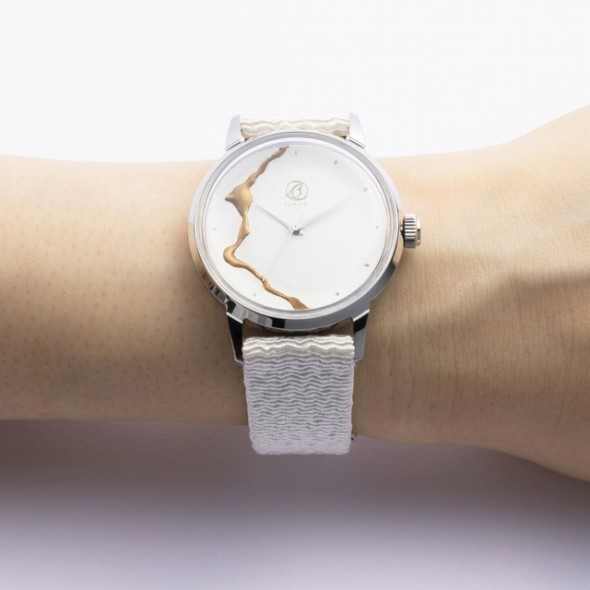 カラーバリエーションには、和の伝統色「勝色(かちいろ)」と「月白(げっぱく)」の2種を採用。ダイヤルは、京都の名所「天橋立」と日本の伝統的な修復技法「金継ぎ」から着想を得た、シンプルでモダンなデザインです。
