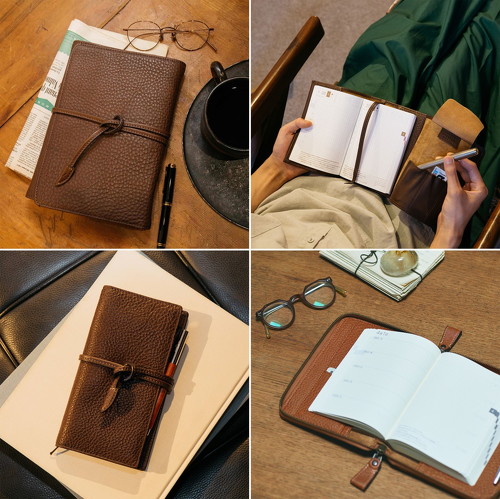 カラーはこげ茶とブラウンの2色展開で、サイズはオリジナルサイズ(A6)、カズンサイズ(A5)、weeks、ほぼ日5年手帳(ジッパータイプ・鍵付き)の4種類展開となっています。