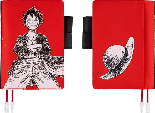 オリジナルサイズ(A6)の手帳カバー「麦わらのルフィ RED」は、真っ赤な背景にドンとルフィをレイアウトしたインパクトのあるデザイン。発色の良いシルク印刷でプリントされています。