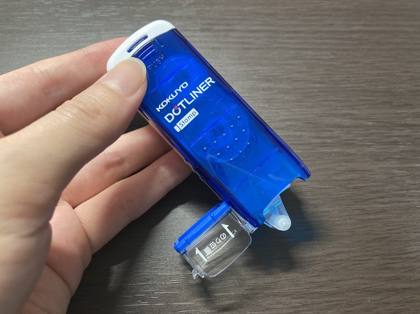 今回購入したコクヨの「ドットライナースタンプ」は、垂直に立てて押すと粘着テープが貼り付くスタンプのりです。細かいところや、ちょっとだけ粘着テープが必要なところにぴったりなアイテム。押すだけで良いので、粘着テープが曲がってしまう心配もありません。キャップ部分を開くと、従来通り引いて使うこともできるため、長く粘着テープを貼り付けたい時も安心です。
